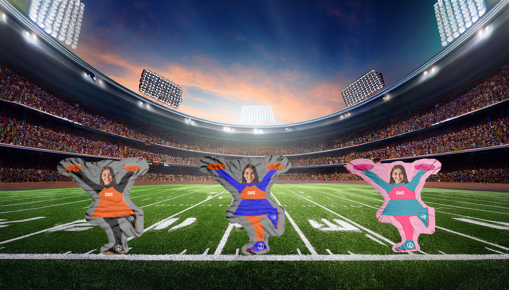Find it difficult to get your young cheerleader to pose for the perfect shot, or can never get in the right position to capture your older player in action? Maybe you have a friend that you always joked should have been a cheerleader and you're looking for a unique gag gift. No matter the case, we got you covered. Simply upload a picture of their face and use the customizer to personalize a pillow/ doll for them. With over a dozen colors and numerous parts to choose from this pillow is sure to cover it all.