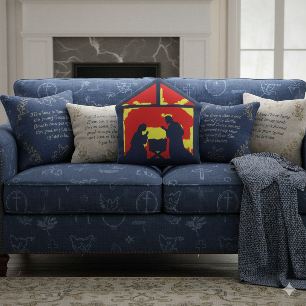 This custom-shaped pillow cutout depicting the birth of Christ is sure to elevate home decor and add a religious touch to any space. The outer cover is made with smooth, plush polyester while the filling is lush polypropylene cotton.