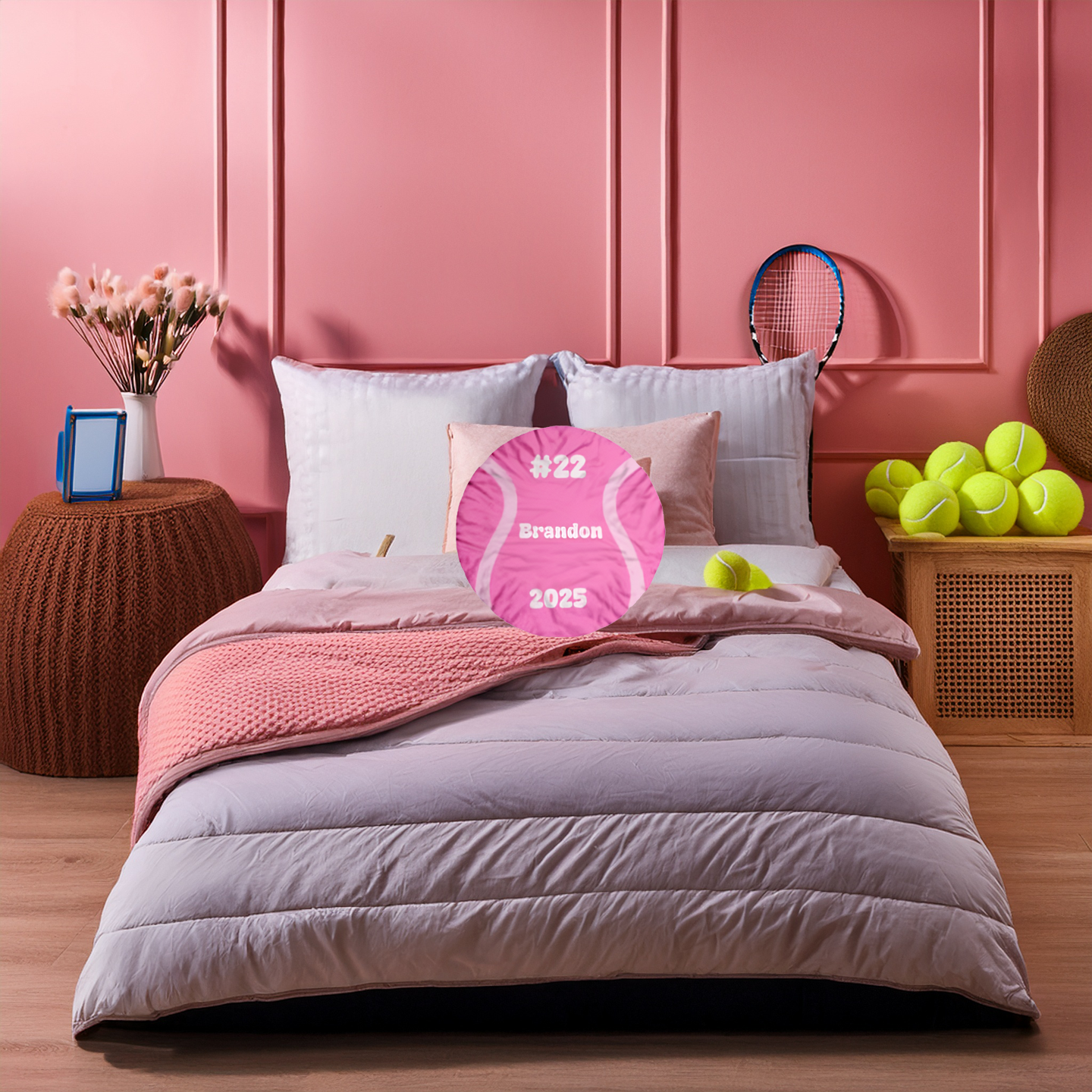 Show that special Tennis player you care with this customized basketball pillow. Choose one of the basketballs provided and add their name, number, year and more. Choose from the letters and images provided or upload your own! Further customization available upon request