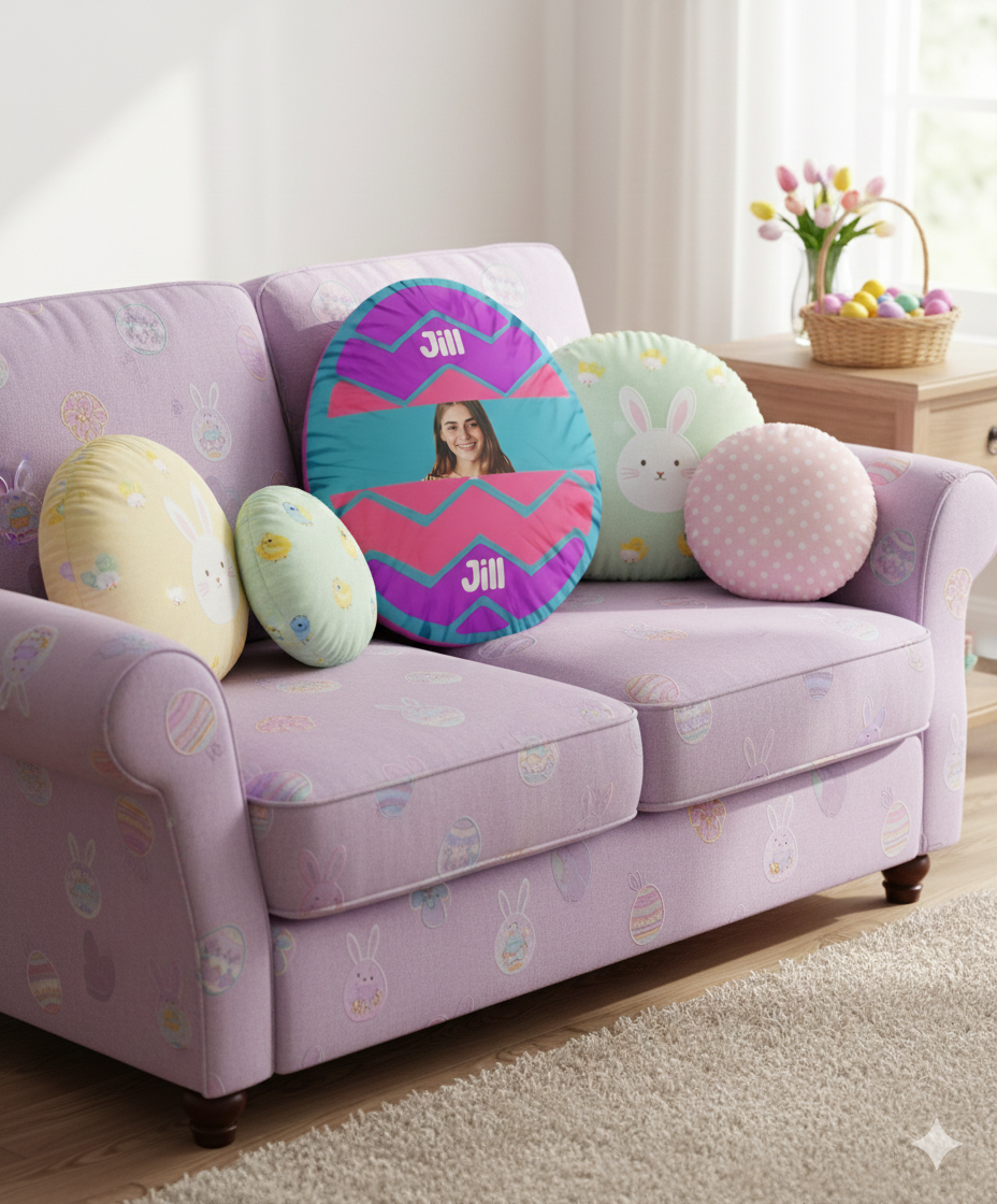 Looking for a one of a kind Easter gift this year that will last a lifetime and not cause a candy belly ache? Look no further and crack out of your shell this year with these customizable Easter egg pillows! Simply upload a picture of you or a loved one to our customizer and choose from over a dozen color combinations for the shell background and the same color options for 7 individual stripes. Then wella! You'll have a pillow of that special someone hatching out of their easter egg shell. The outer cover is made with smooth, plush polyester while the filling is lush polypropylene cotton. Grab one now!